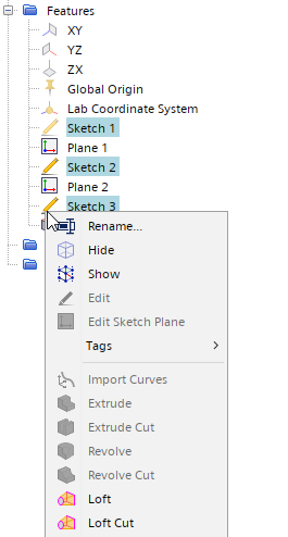 (放样)。 - 在 3D-CAD 视图窗口中右键单击,然后选择或放样剪切。