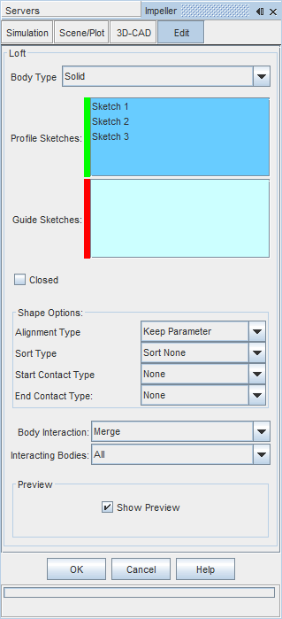 在 3D-CAD 视图窗口中进行预览,以检查各草图是否处于可让放样穿过的正确顺序。