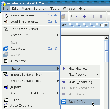 互动会话期间,Simcenter STAR-CCM+ 将自动为默认宏中的每个操作录制 Java 代码。