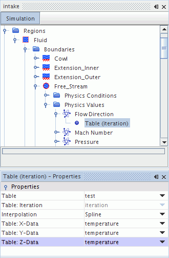 使用表设置矢量分布 还可以使用单个表的方法来指定矢量分布。 x 分量、y 分量和 z 分量分别具有单独的数据属性。 与标量和压力分布的表方法情况相同,可以针对迭代、半径、时间、(x,y,z) 和(xyz,时间)自定义属性。