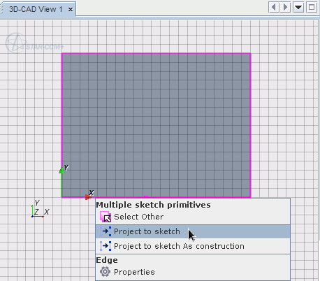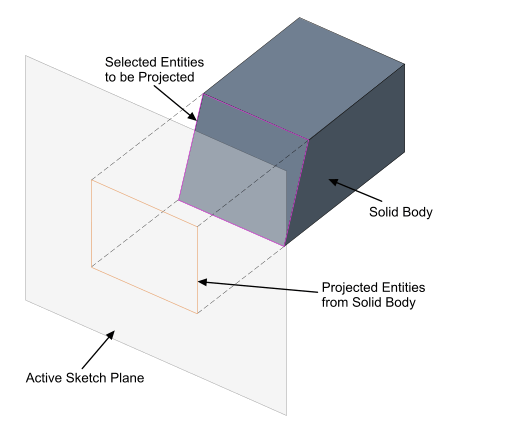 选定实体(如果是面,则为面的边)将投影到活动草图。投影的实体显示为橙色以便于识别。