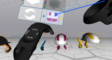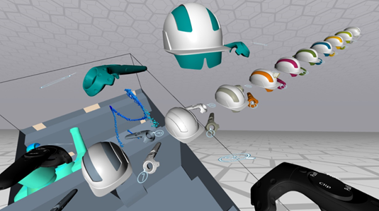 - 每个用户及其操控手柄的位置和方向都将传送给场景中的所有其他用户,每个用户均使用不同颜色的安全帽头像。还会传送诸如颗粒喷射和面板设置等互动工具。因此,可以看到场景中所有其他用户的即时操作。
