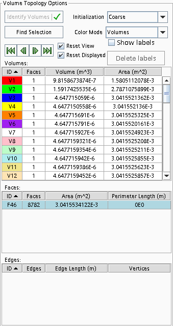 在体积表中选择一行时,会产生两个后续操作:- 该体积的拓扑面将填充到面表中。