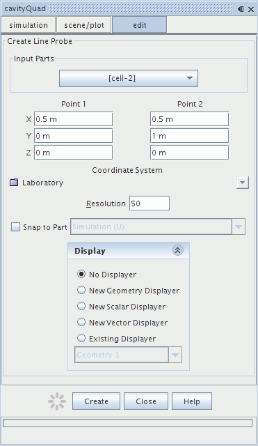 属性 值 输入部件 网格单元-2 点 1 [0.5, 0.0, 0.0] 点 2 [0.5, 1.0, 0.0] 分辨率 50 显示 没有显示器 -