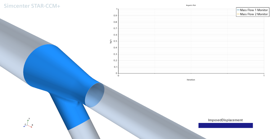 可通过针对原始几何显示优化几何进行可视化。可添加矢量显示器以显示施加的位移场矢量,并使用质量流量绘图作为场景中的注释来跟进优化进度。
