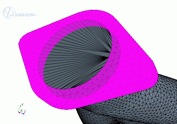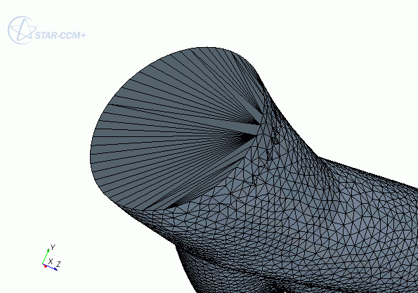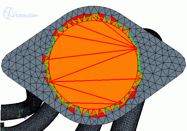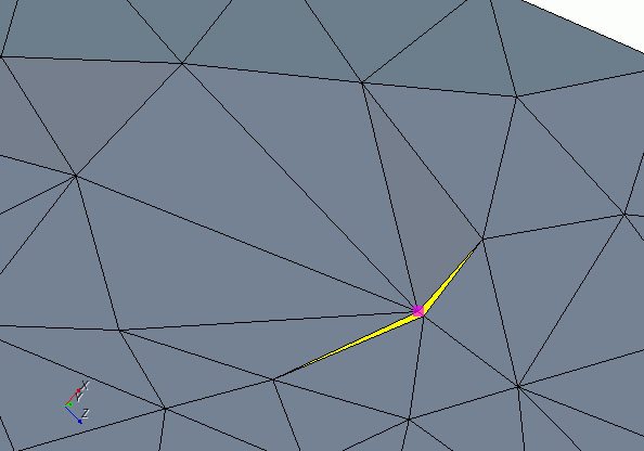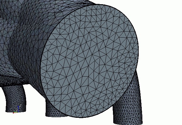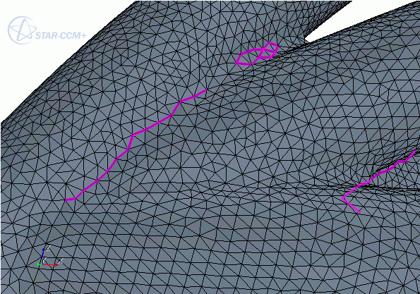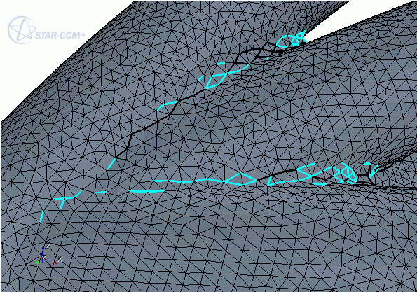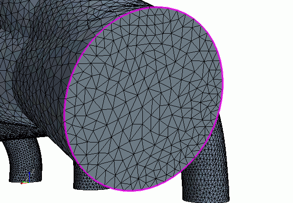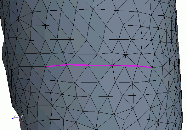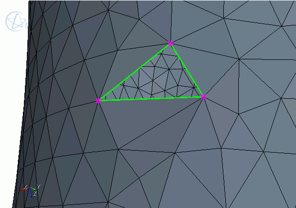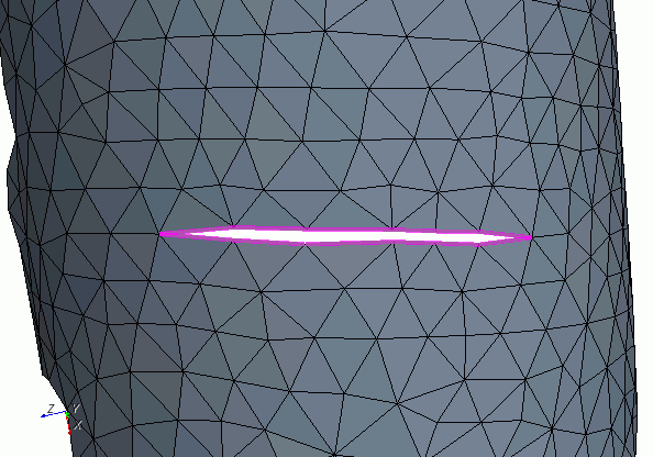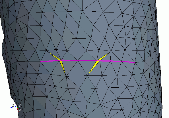 选定的面随后会进行局部表面重构。这将消除原始面,提供高质量的三角形化结果。与其他两个方法相比,此方法的优势是可以完全自动化。不需要标识短边或提供合并容差。