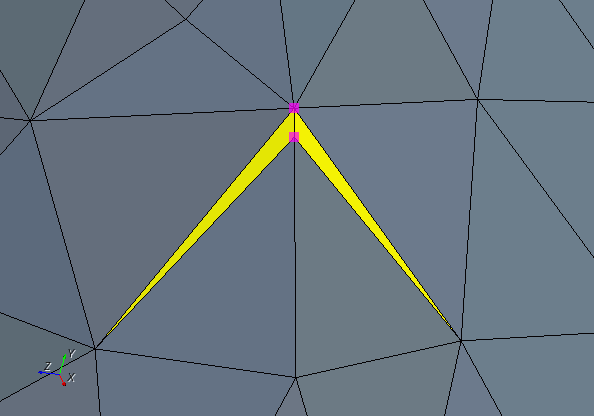 可以通过多种方式解决这些问题:- 选择较短的边,并使用 Collapse Vertices(重叠节点) 工具。这会重叠节点并从面网格移除质量较差的面。