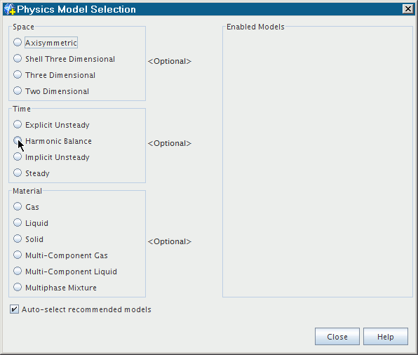 选择谐波平衡模型时,无法选择耦合流体或分离流模型。