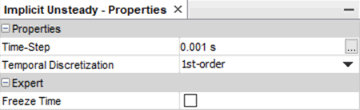 节点 属性 设置 隐式不定常 时间步 0.001 s
