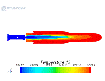 - 选择 节点,然后使用 Simcenter STAR-CCM+ 11.02 版中为燃料/空气混合物入口边界设置的温度来设置流束温度。