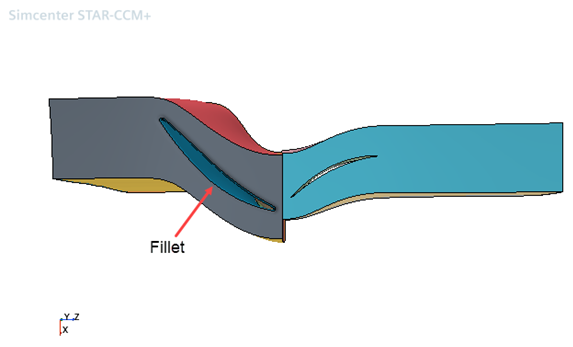 注 本教程中的几何包括轮毂上的圆角。涡轮机网格操作支持轮毂或罩体上的圆角,只要没有在轮毂或罩体部件表面中包含圆角部件表面。例如,可以合并圆角表面和叶片表面。该操作不支持叶片尖端处的圆角。 - 将模拟另存为 compressorStageMesh.sim。