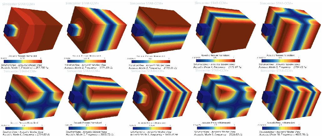 Simcenter STAR-CCM+ 提供了声学模态分析模型,用于仿真声学模态形状、频率和线性增长率。