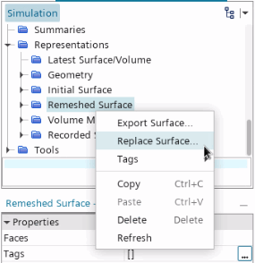 替换表面的操作不会干扰网格生成流程,并且是用于对不同表面执行多次网格运行的简便方式,因为将保留所有参数设置和值。