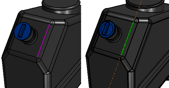 为了节省重复应用该操作的选择过程的时间,可以构造一个设计过滤器来存储所选面,然后每次重新应用此过滤器。有关更多信息,请参见创建设计过滤器。在下面的示例中,选择了以紫色高亮显示的容器嘴。