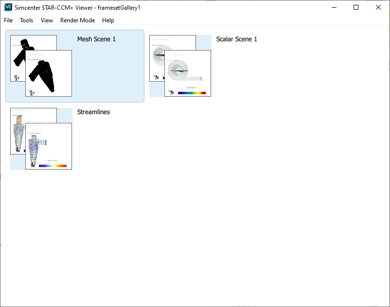 Simcenter STAR-CCM+ Viewer将显示可用场景的缩略图预览。
