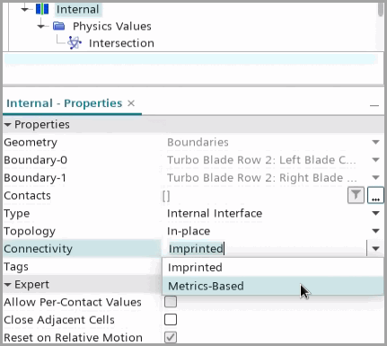 - Due to computational performance, a metrics-based interface should not share boundaries (or part surfaces) with another metrics-based interface. Sharing boundaries serializes the intersection computation and results in a lower performance.