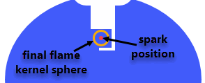 随着 0D 火花半径增加到最终火焰内核的球体半径,火焰内核球体的反应过程将从未燃烧均匀地增加到燃烧。稍后,将在 CFD 网格上对火焰进行求解。