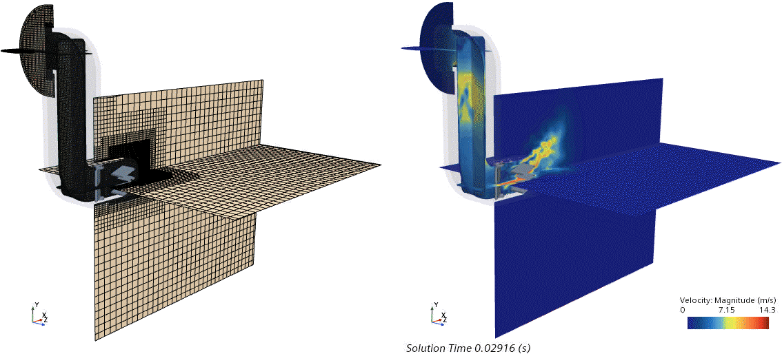 可以检查网格并查看速度随 LES 模拟进度的变化: