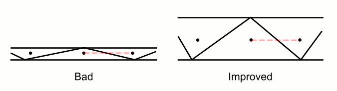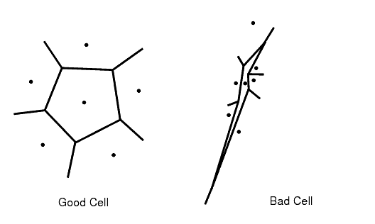 - 要获得最佳精度和稳定性的扩散通量,连接相邻网格单元形心的线最好尽可能与分隔网格单元的面接近正交。在 Simcenter STAR-CCM+ 中,此角度为网格单元偏斜角。下面显示了高偏斜角的二维示例: