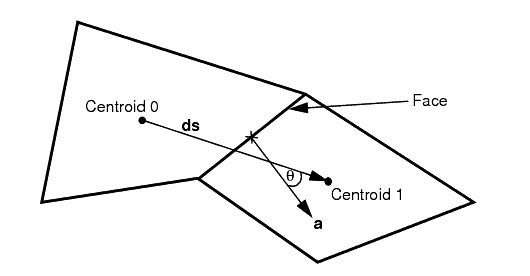 其中:- 为从面中心投影到连接网格单元中心的线的矢量。