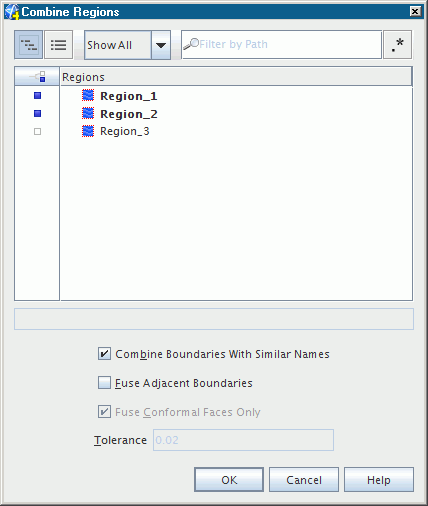 组合区域的名称是组合区域对话框中的第一个区域(按字母顺序排序)。 此操作可能要求融合相邻边界。 |