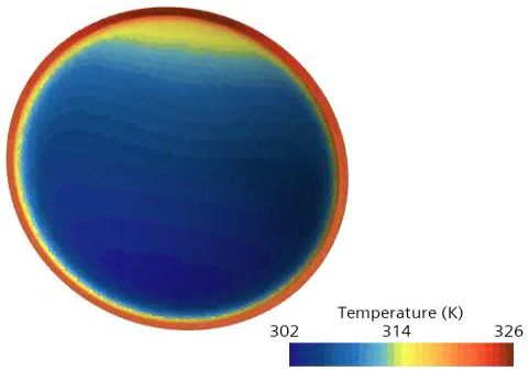The temperature is highest around the edges of the lens.
