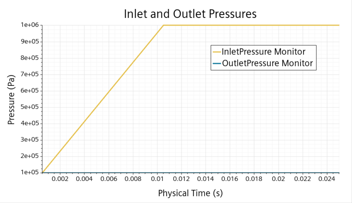 运行模拟 运行模拟并可视化结果。 右键单击绘图 > 板位移监控器绘图并选择打开。 右键单击并打开压力绘图。 单击 初始化求解。 单击 运行。 模拟完成后,保存模拟。 模拟结束时,板位移监视器绘图和压力绘图显示如下。
