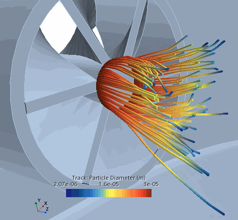 正十二烷是一种以喷射液滴形式进入燃烧室的液体燃料,然后会汽化并燃烧。为了优化燃烧效率,必须检查燃料在进入燃烧室后是否有效汽化。为了实现液体汽化的可视化,您可以在标量场中追踪正十二烷燃料液滴的颗粒直径。