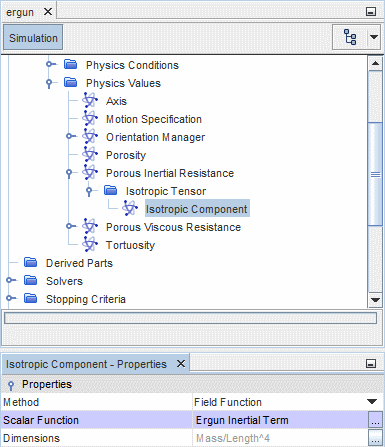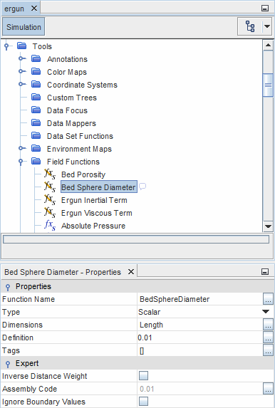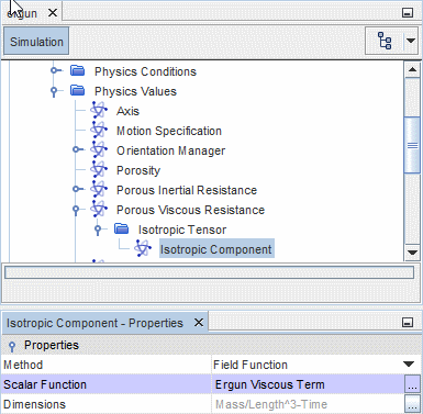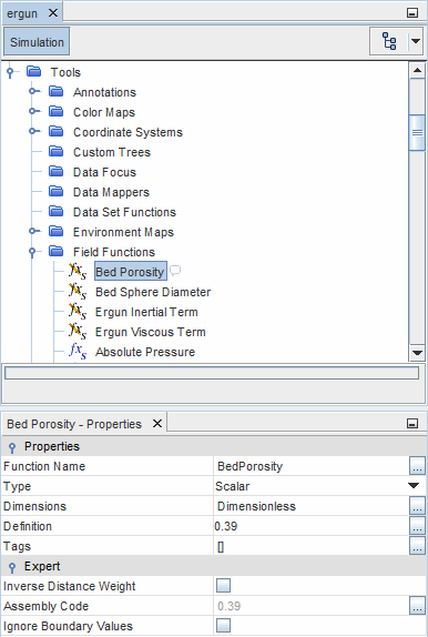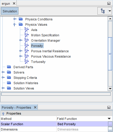 - 在属性窗口中,使用下拉菜单将方法属性设为场函数,然后将标量函数属性设为 Bed Porosity(床孔隙率)。