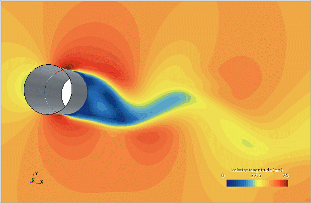 查看结果 查看速度幅值轮廓和壁面 Y+ 轮廓场景。 单击速度值轮廓选项卡。 显示与下列所示场景类似的场景。以上绘图显示了有代表性的尾流场。 单击壁面 Y+ 轮廓选项卡。 显示与下列所示场景类似的场景:所有地方的壁面 Y+ 值都小于 1。 在图形窗口内,关闭壁面 Y+ 场景。